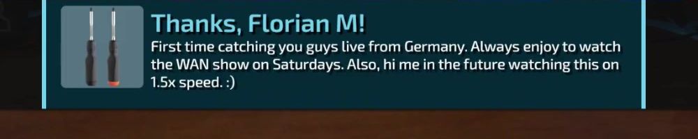 Hint: Use CTRL + F to search messages in this show, or use Whenplane's WAN Show Search tool to search for messages in all shows. Make sure that the "Merch Messages" box is checked when you search for something.