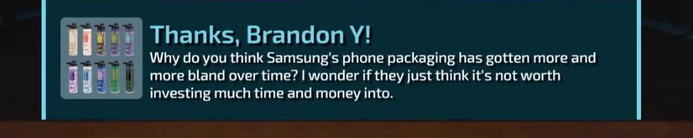 Thanks, Brandon Y! Why do you think Samsung's phone packaging has gotten more and more bland over time? I wonder if they just think it's not worth investing much time and money into.