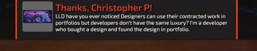 Thanks, Christopher P! LLD have you ever noticed Designers can use their contracted work in portfolios but developers don't have the same luxury? I'm a developer who bought a design and found the design in portfolio.