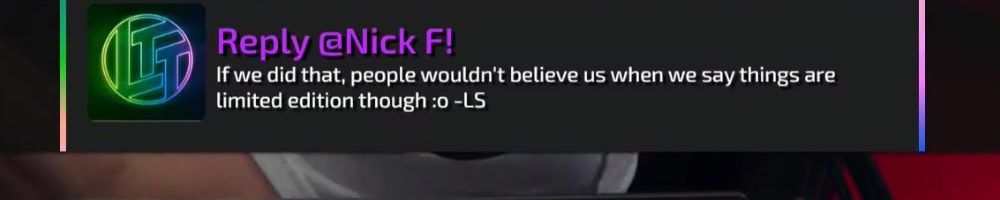Reply @Nick F! If we did that, people wouldn't believe us when we say things are limited edition though :0 -LS