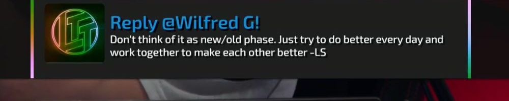 Reply @Wilfred G! Don't think of it as new/old phase. Just try to do better every day and work together to make each other better -LS