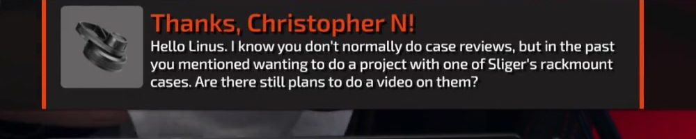 Thanks, Christopher N! Hello Linus. I know you don't normally do case reviews, but in the past you mentioned wanting to do a project with one of Sliger's rackmount cases. Are there still plans to do a video on them?