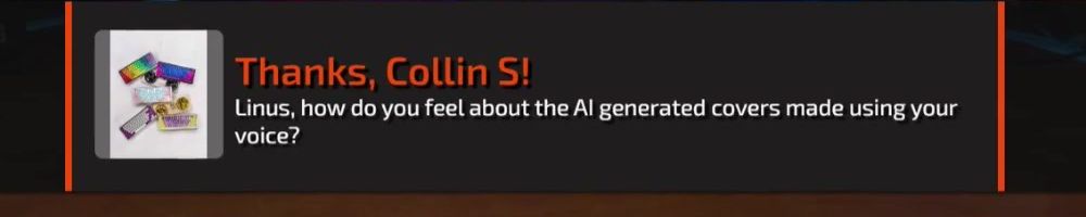 Thanks, Collin S! Linus, how do you feel about the AI generated covers made using your voice?