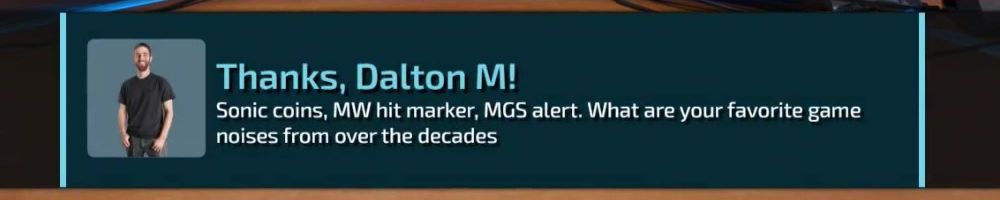 Thanks, Dalton M! Sonic coins, MW hit marker, MGS alert. What are your favorite game noises from over the decades