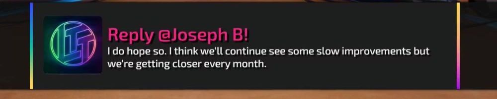Reply @Joseph B! I do hope so. I think we'll continue see some slow improvements but we're getting closer every month.