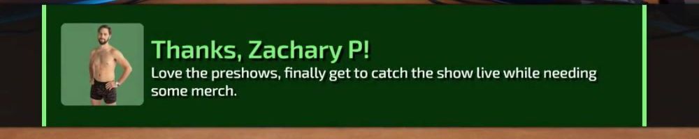 Thanks, Zachary P! Love the preshows, finally get to catch the show live while needing some merch.