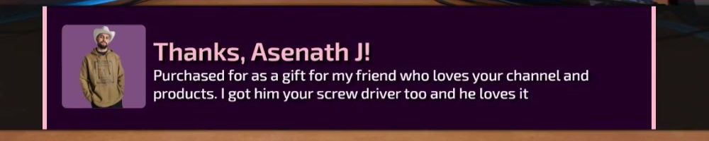 Thanks, Asenath J! Purchased for as a gift for my friend who loves your channel and products. I got him your screw driver too and he loves it