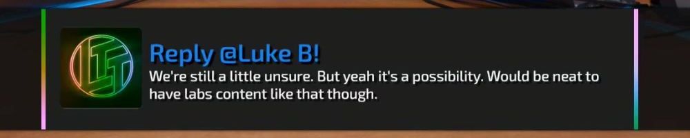 Reply @Luke B! We're still a little unsure. But yeah it's a possibility. Would be neat to have labs content like that though.
