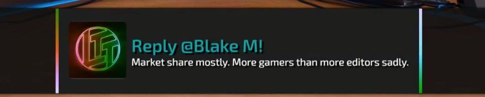 Reply @Blake M! Market share mostly. More gamers than more editors sadly.
