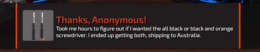 Took me hours to figure out if I wanted the all black or black and orange screwdriver. I ended up getting both, shipping to Australia.