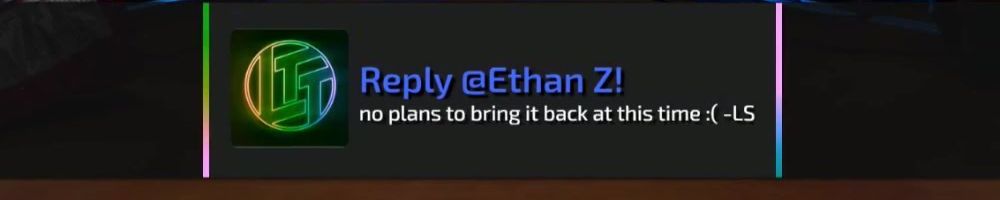 Welcome back LLD! Glad to see you and the whole team are back on the