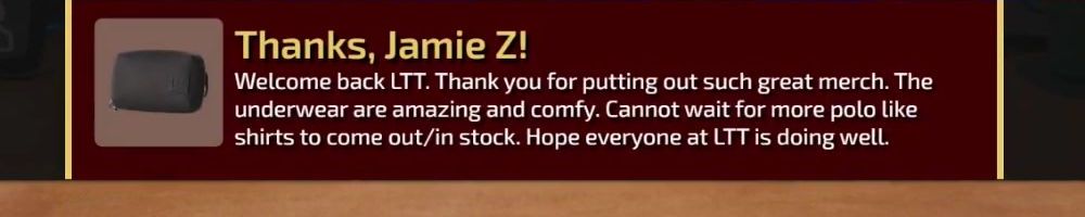 Welcome back LTT. Thank you for putting out such great merch. The underwear are amazing and comfy. Cannot wait for more polo like shirts to come out/in stock. Hope everyone at LTT is doing well.
