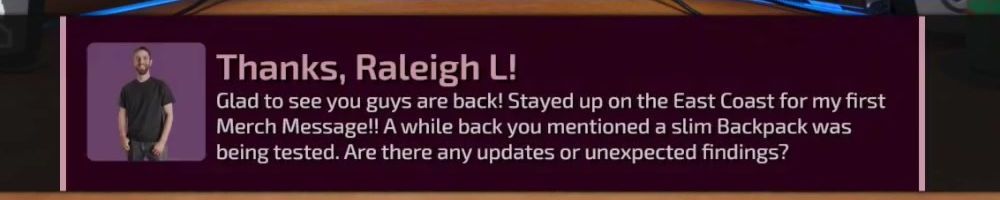 Merch Message!! A while back you mentioned a slim Backpack was
