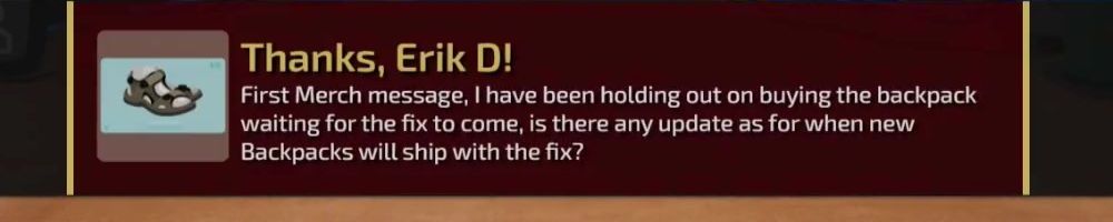First Merch message, I have been holding out on buying the backpack waiting for the fix to come, is there any update as for when new Backpacks will ship with the fix?