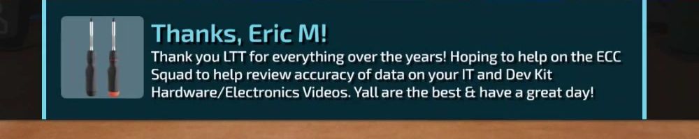 Thank you LTT for everything over the years! Hoping to help on the ECC Squad to help review accuracy of data on your IT and Dev Kit Hardware/Electronics Videos. Yall are the best & have a great day!