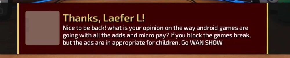 Nice to be back! what is your opinion on the way android games are going with all the adds and micro pay? if you block the games break, but the ads are in appropriate for children. Go WAN SHOW