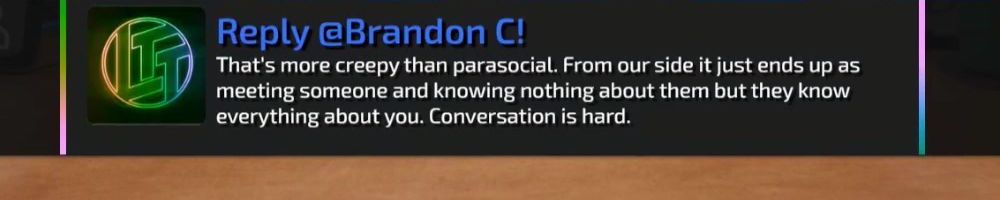 That's more creepy than parasocial. From our side it just ends up as meeting someone and knowing nothing about them but they know everything about you. Conversation is hard.