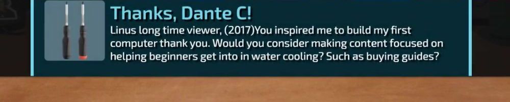 Linus long time viewer, (2017)You inspired me to build my first computer thank you. Would you consider making content focused on helping beginners get into in water cooling? Such as buying guides?