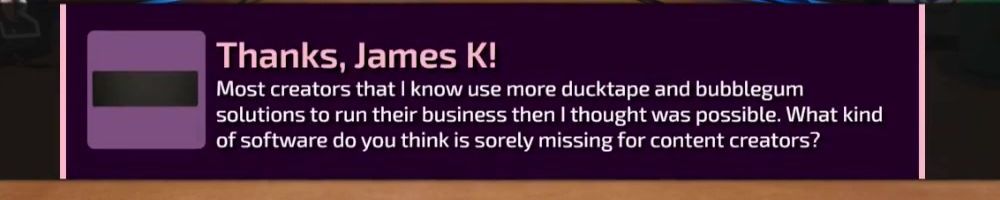Most creators that I know use more duct tape and bubble gum solutions to run their business than I thought was possible. What kind of software do you think is sorely missing for content creators?