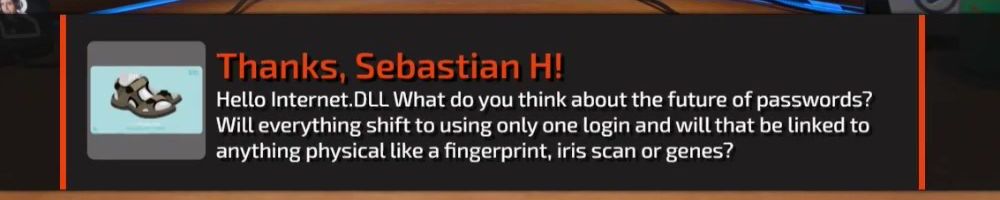 Hello Internet.DLL What do you think about the future of passwords? Will everything shift to using only one login and will that be linked to anything physical like a fingerprint, iris scan or genes?