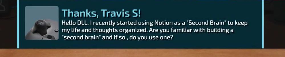 Hello DLL. I recently started using Notion as a "Second Brain" to keep my life and thoughts organized. Are you familiar with building a "second brain" and if so, do you use one?