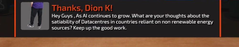 Hey Guys , As Al continues to grow. What are your thoughts about the satiability of Datacentres in countries reliant on non renewable energy sources? Keep up the good work.