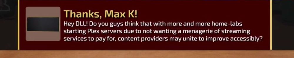 Hey DLL! Do you guys think that with more and more home-labs starting Plex servers due to not wanting a menagerie of streaming services to pay for, content providers may unite to improve accessibly?