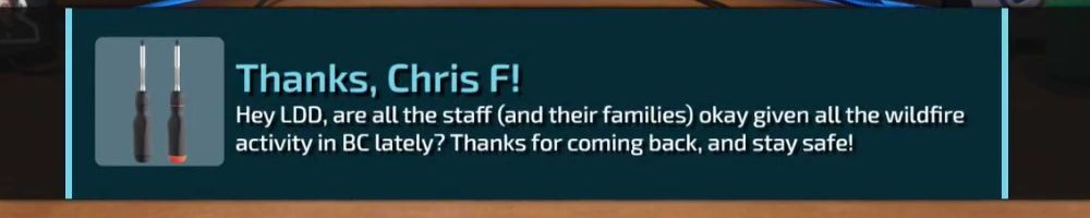Hey LDD, are all the staff (and their families) okay given all the wildfire activity in BC lately? Thanks for coming back, and stay safe!