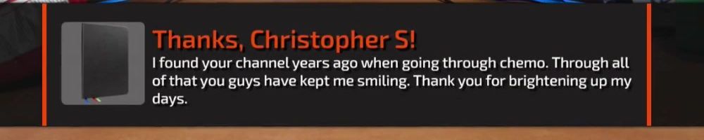 I found your channel years ago when going through chemo. Through all of that you guys have kept me smiling. Thank you for brightening up my days.