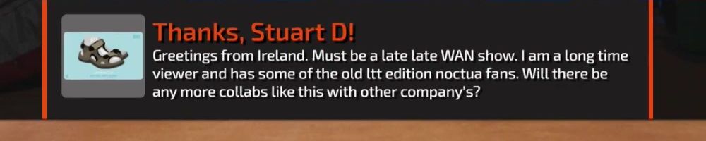 Greetings from Ireland. Must be a late late WAN show. I am a long time viewer and has some of the old ltt edition noctua fans. Will there be any more collabs like this with other company's?