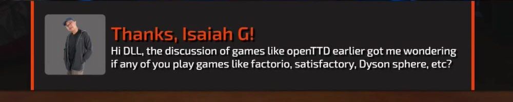 Hi DLL, the discussion of games like openTTD earlier got me wondering if any of you play games like factorio, satisfactory, Dyson sphere, etc?