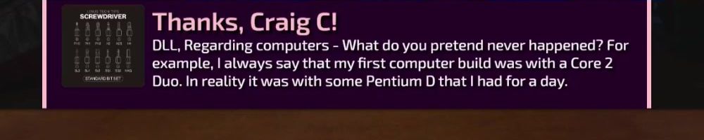 DLL, Regarding computers - What do you pretend never happened? For example, I always say that my first computer build was with a Core 2 Duo. In reality it was with some Pentium D that I had for a day.