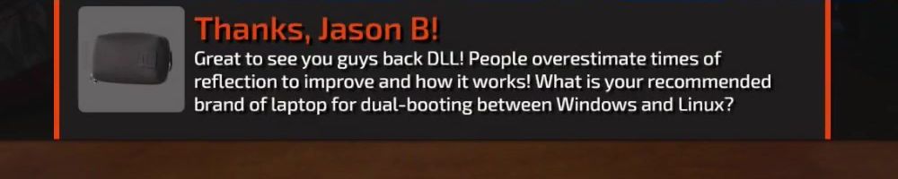 Great to see you guys back DLL! People overestimate times of reflection to improve and how it works! What is your recommended brand of laptop for dual-booting between Windows and Linux?