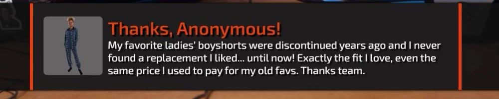 Thanks, Anonymous! My favorite ladies’ boyshorts were discontinued years ago and I never found a replacement I liked... until now! Exactly the fit I love, even the same price I used to pay for my old favs. Thanks team.