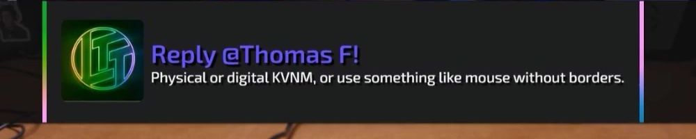 Reply @Thomas F! Physical or digital KVNM, or use something like mouse without borders.