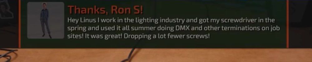 Thanks, Ron S! Hey Linus I work in the lighting industry and got my screwdriver in the spring and used it all summer doing DMX and other terminations on job sites! It was great! Dropping a lot fewer screws!