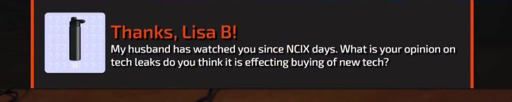 Thanks, Lisa B! My husband has watched you since NCIX days. What is your opinion on tech leaks do you think it is effecting buying of new tech?