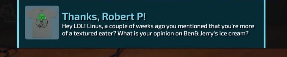 Thanks, Robert P! Hey LDL! Linus, a couple of weeks ago you mentioned that you're more of a textured eater? What is your opinion on Ben& Jerry's ice cream?