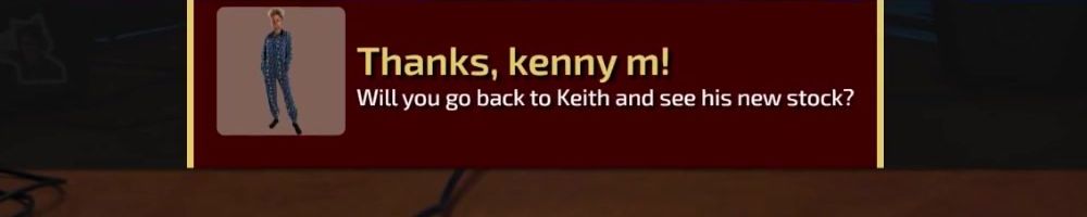 Thanks, kenny m! Will you go back to Keith and see his new stock?
