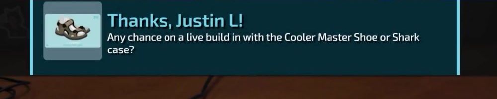 Thanks, Justin L! Any chance on a live build in with the Cooler Master Shoe or Shark case?