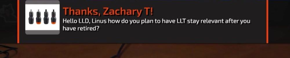 Thanks, Zachary T! Hello LLD, Linus how do you plan to have LLT stay relevant after you have retired?