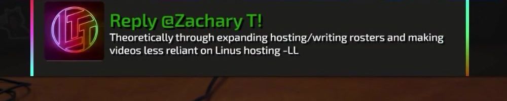 Reply @Zachary T! Theoretically through expanding hosting/writing rosters and making videos less reliant on Linus hosting -LL