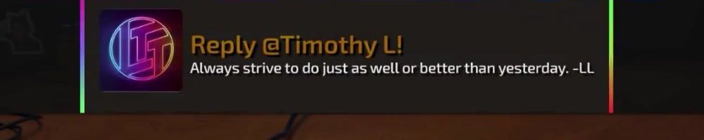 Reply @Timothy L! Always strive to do just as well or better than yesterday. -LL