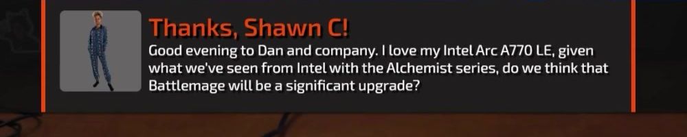 Thanks, Shawn C! Good evening to Dan and company. I love my Intel Arc A770 LE, given what we've seen from Intel with the Alchemist series, do we think that Battlemage will be a significant upgrade?