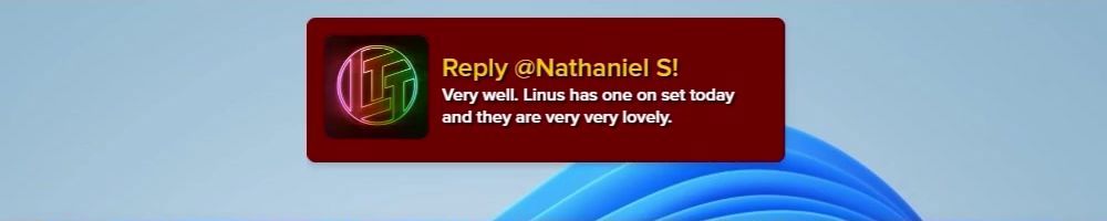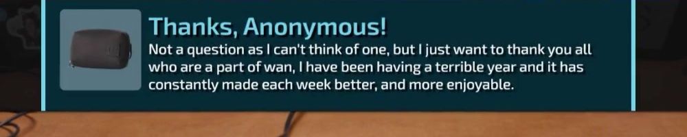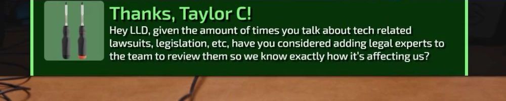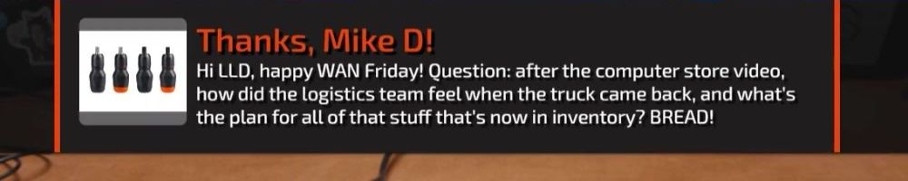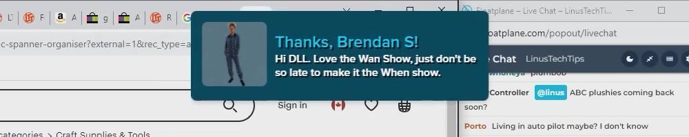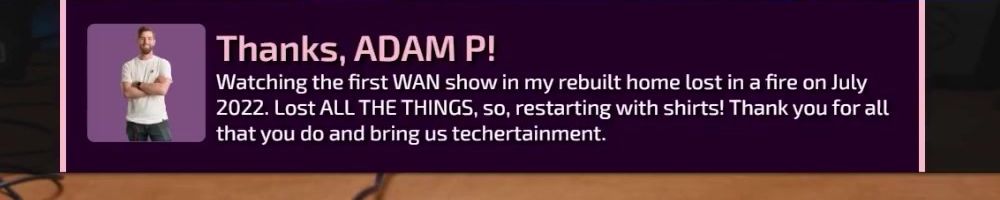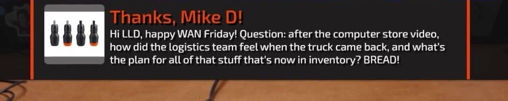Thanks, Brendan S! Hi DLL. Love the Wan Show, just don't be so late to make it the When show.