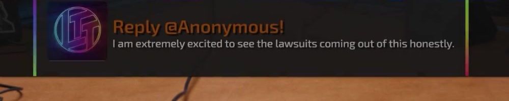 Reply @Anonymous! I am extremely excited to see the lawsuits coming out of this honestly.