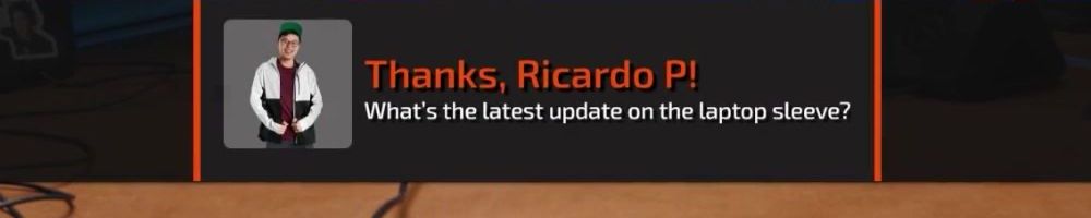 Thanks, Ricardo P! What's the latest update on the laptop sleeve?
