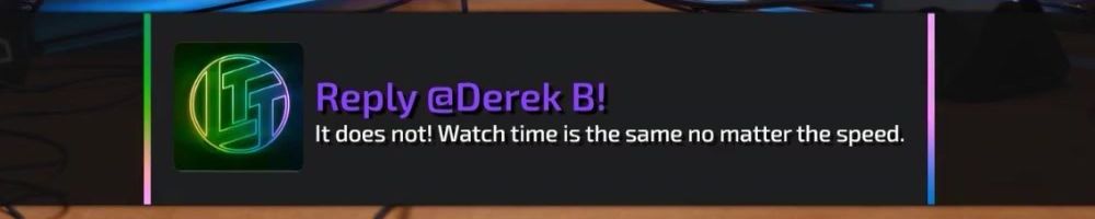 Reply @Derek B! It does not! Watch time is the same no matter the speed.