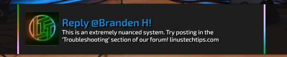 Reply @Branden H! This is an extremely nuanced system. Try posting in the 'Troubleshooting' section of our forum! linustechtips.com