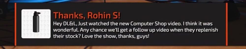 Thanks, Rohin S! Hey DL&L, Just watched the new Computer Shop video. I think it was wonderful. Any chance we'll get a follow up video when they replenish their stock? Love the show, thanks, guys!